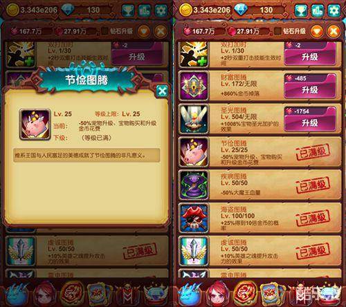 如果说“指纹图腾”可以帮助我们更有利的进行闯关,那“节俭图腾”的存在就是可以更好的帮助勇者们提升自身强度!节俭图腾可以大幅度减少魔宠升级、宝物购买与升级所消耗的金币,帮助勇者们在强化自身与宠物的时候将消耗大幅度降低,从而节省下大量资源,进一步帮助自身突破!