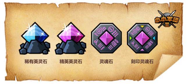 《小小军团2》中抽卡道具相对比较简单,有如下四种,分别是稀有英灵石、精英英灵石、灵魂石和刻印灵魂石,那么下面就一起来看一下每个道具的详情介绍。