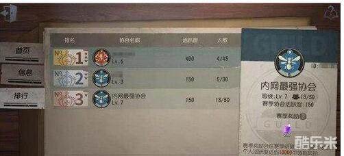 协会成员参与签到、日常战斗、五排赛可获得的个人活跃度,将其转化为协会经验,可用来提升协会等级,等级越高可容纳协会成员数量越多;