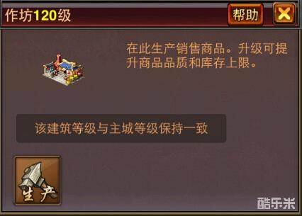 首先作坊是供玩家生产销售商品,作坊建筑等级越高,那么所售商品的品质和库存就越高,因为当前版本建筑等级是随着主城等级来提升的,所以玩家朋友们只要适时提升主城等级就可以咯!