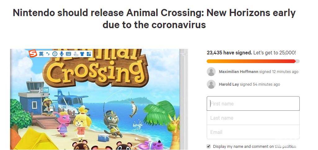 比如过去几天,有关「动森」粉丝发起请愿希望任天堂能够提前发售《集合啦!动物森友会》的新闻就一直在不同的论坛和网站上刷屏。这个请愿最初由网友 Brad G 发起,请愿书中写到发起这个请愿的初衷是希望在多项活动取消的情况下,人们能够通过另一种方式来度过这段难熬的时间。Brad G 认为在娱乐活动逐渐减少的当下,《集合啦!动物森友会》可以给人们提供一个安全的娱乐方式、一定程度上降低人们的恐慌感,让人们依然能够通过安全的方式来保持社交活动等。而这个请愿活动目前已经有超过 2 万 3 千名玩家的支持。