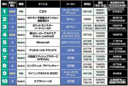 本周日本游戏市场销量分析:《仁王 2》首周销量登顶