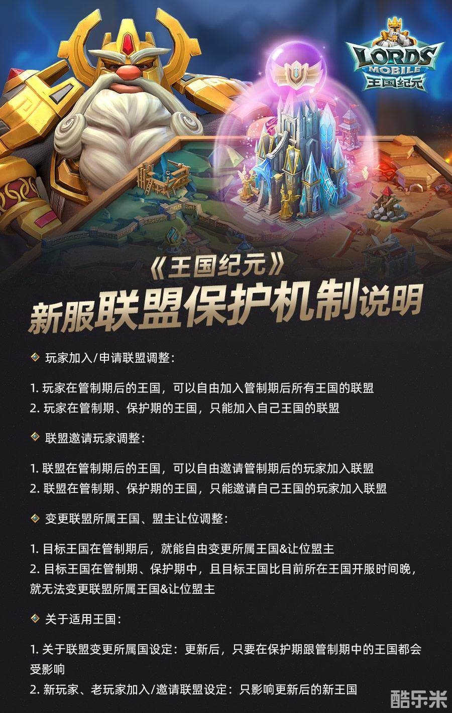 长久以来,玩家的游戏体验一直是《王国纪元》最关注的问题,为让新玩家拥有追加的游戏体验,本次3月大更新增【新服联盟保护机制】,助力新领主在王国大陆更好、更快的成长!