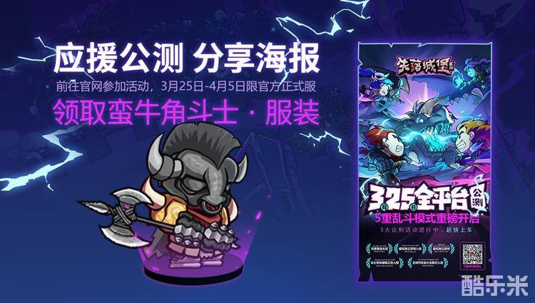 分享宣传海报至朋友圈或QQ群,即可获得限定套装组件【蛮牛角斗士·服装】。