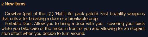 据《死亡细胞》官方的介绍,新武器“撬棍”的使用方法与其他近战武器略有不同,它的效果是当玩家使用撬棍打破一扇门或是可被破坏的支撑物后,攻击就将产生暴击效果。似乎从介绍上来看这把“物理学圣剑”在某些门较多的地图中可以发挥奇效,但是否具有通用性还需要玩家们在游戏中亲身体验。
