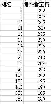 根据高阶竞技场排名奖励角斗者宝箱,每天分三个时间记录玩家高阶竞技场的排名,根据最高一次记录排名发放角斗士宝箱。