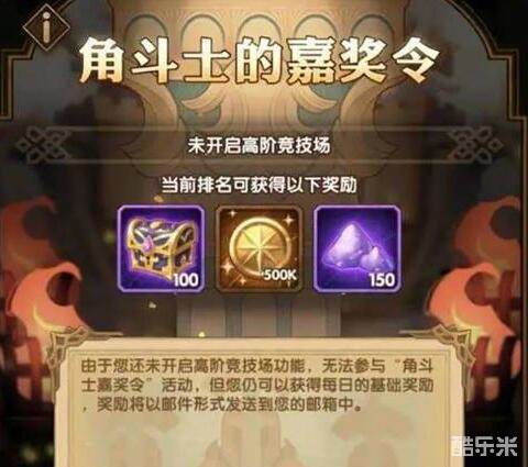 未开启高阶竞技场的玩家每天获得100角斗士宝箱。