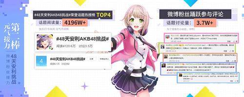 在营销宣传发面,《樱桃湾之夏》在这一个月内成为了bilibili的热门话题之一,诸多UP主队游戏进行了试玩和直播,其中产出的素材也深受网民追捧。其中猛男打气舞等优秀作品一度获得bilibili推荐,荣登舞蹈区Top1。在微博等主要网络阵地,官方发起的48天安利AKB48挑战同样吸引诸多粉丝参与,累计阅读数近5000万。