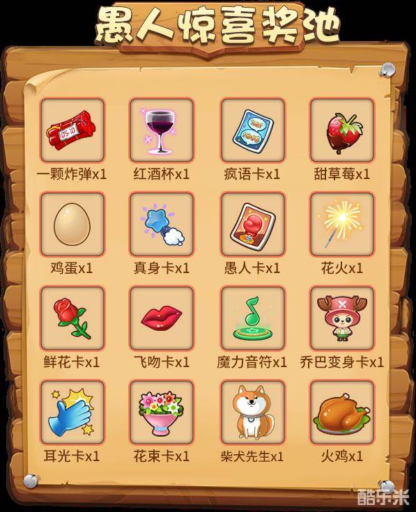 1. “愚人惊喜奖池”中的奖励均为绑定物品,不可交易、回收和续期;
