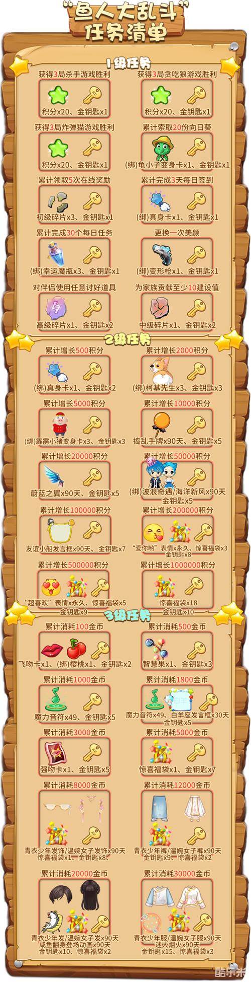 活动期间,三份任务清单等你挑战!每完成一项任务,都可以获得其中的奖励,击退鱼人,势在必行!