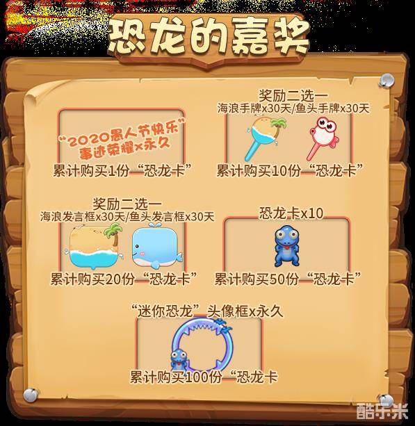 活动期间,接收非绑定整蛊道具:“恐龙卡”将不会扣除积分,而是增加相同的积分。每成功接收10个非绑定的“恐龙卡”即可获得一次“恐龙奖池”抽奖机会!有几率获得愚人节顶级纪念品:纯金·恐龙卡!