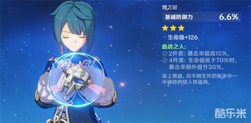 血战之人,圣遗物套装之一,配置后除了单个圣遗物的属性加成外,还将得到对应的套装能力,如下: