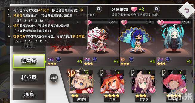 再顺便介绍一下游戏怎么换看板娘,看板娘设置:游戏默认看板娘是小夜,如果你不喜欢小夜或者有其他更喜欢的伙伴可以进行看板娘更换,方法是双击默认的小夜就会出现一个切换提示,然后你就可以将看板娘更换为你已经获取的伙伴,背景也可以更换哦