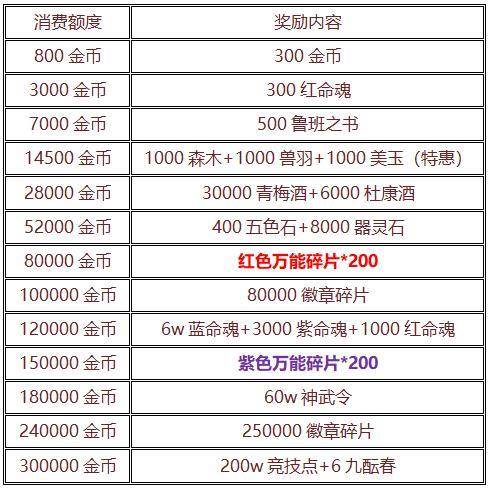 【活动内容】活动期间,游戏内累计消费达到对应金币,即可获得对应奖励;所有商品绝对超值,不信你自己看。相中哪个千万别手软!因为一犹豫也许就不知道何时能再见了。