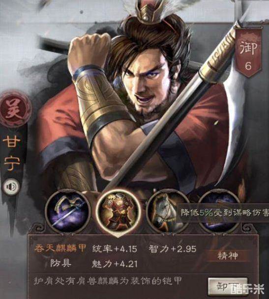 这支队伍的细节,甘宁装备上追求增加“统”,适当减少谋伤,不追求“武”。