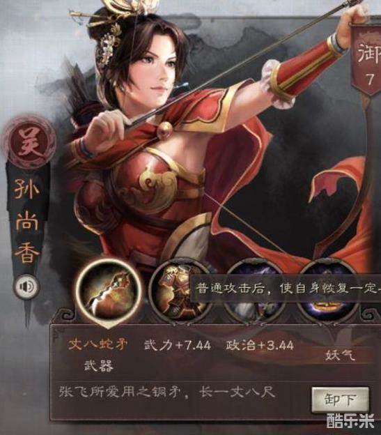太史慈和孙尚香最好都有“妖气”武器,这支吴弓的续航由三个“小续航”构成,战场上一点点回兵力都是能滚雪球的:锦帆军恢复,妖气恢复,兵书“胜而益强”恢复。