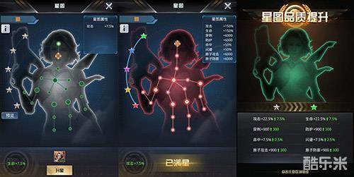 每位美女机甲师都有星图系统,星图的品质分别是白、绿、蓝、紫、橙、红这六个阶段,指挥官可以消耗材料来点亮星图的节点,点亮后可以为美女机甲师增加更多的属性,当点亮当前阶段的所有节点时,星图的品质将会提升一星,并获得额外的属性,这些属性会提升上阵的所有兵种的战力。更高品质的星图将为您的美女机甲师带来大量的战力提升,助阵指挥官在激烈的战斗中战胜敌人,所向披靡!