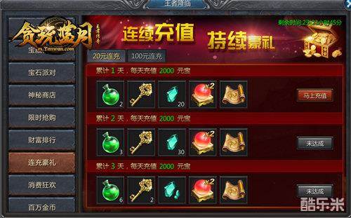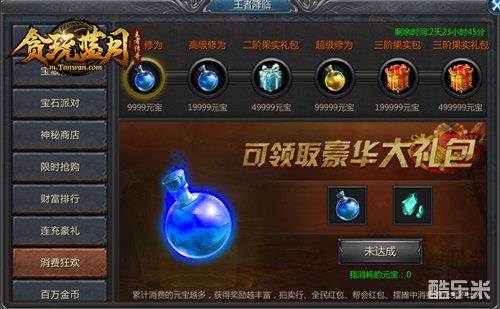 活动期间,玩家消费元宝达到对应要求,就可领取豪华大礼包!