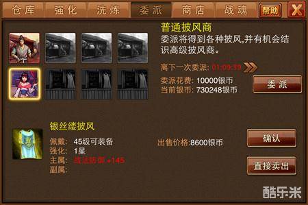 | 银狐氅 | 奖励:新手礼包第七天奖励 委派:次级披风商 奖励:击败马腾 | 51 | 黄 | ★★★ | 出的概率还是比较低,不过通过奖励可以拿到1-2件,在37级能用的无忌披风面前已经丧失了以前版本的重要性。 |
