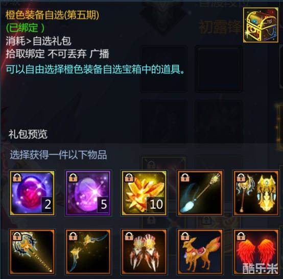 橙色装备自选(第五期)与之前并无不同,还是可获得董军*戮神笔、董军*万向双煞、董军*乌磐斧、董军*紫金弓以及董军*紫狼牙、三尾乘黄、凤舞九天等道具~