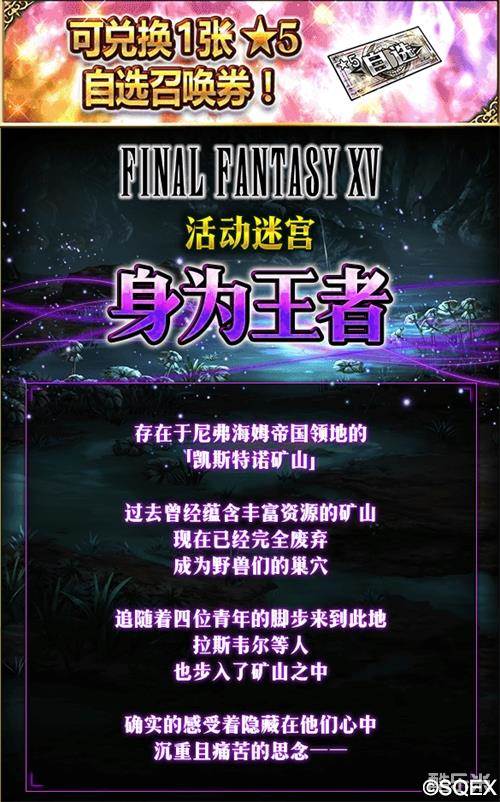 4月2日更新后,FFBE将开启活动迷宫:身为王者。完成身为王者后即可获得一张五星自选召唤券!