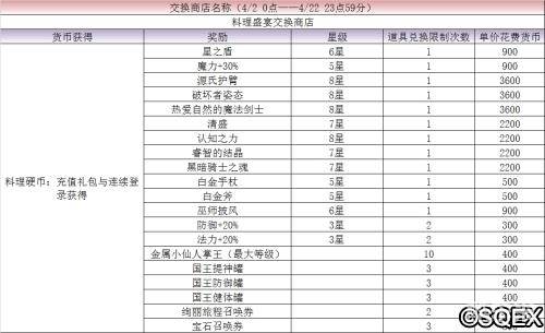 玩家可以通过连续登录获得料理币,在料理盛宴交换商店兑换各种稀有道具和强力装备。星之盾、魔力+30%、宝石召唤券、认知之力等高星道具登录即领取,快来行动吧~