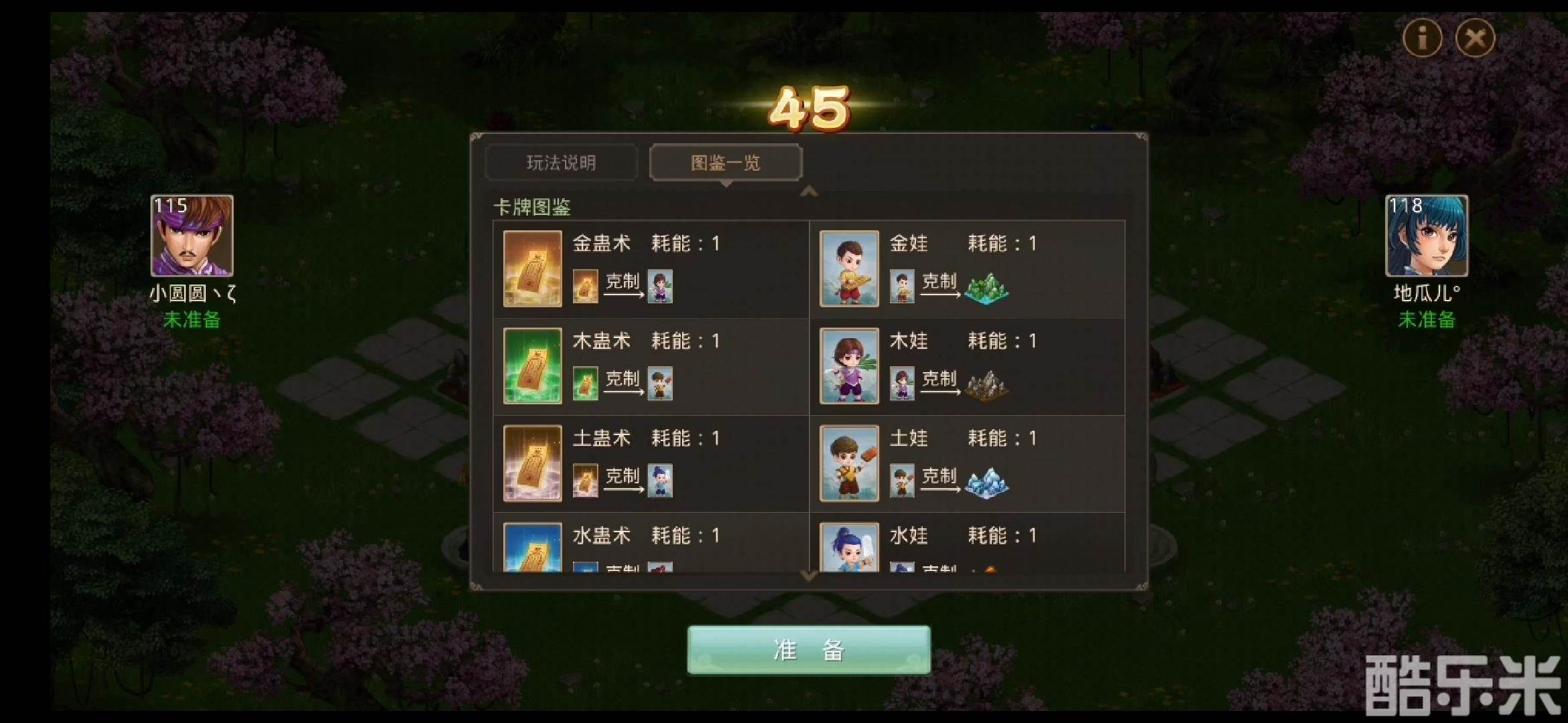 一人加入愚公方使用“人牌”进行移山;一人加入智叟方使用“术牌”克制“人牌”,保护高山。“人牌”和“术牌”均有五行属性,每次出牌需要消耗能量值,每张牌上标有需要消耗的能量值。每回合开始,能量上限值增加1,并补满当前能量值,愚公最多拥有8点能量值,智者最多拥有5点能量值。在10个回合内,有3座高山被移除,则愚公获得胜利,否则智叟获胜。