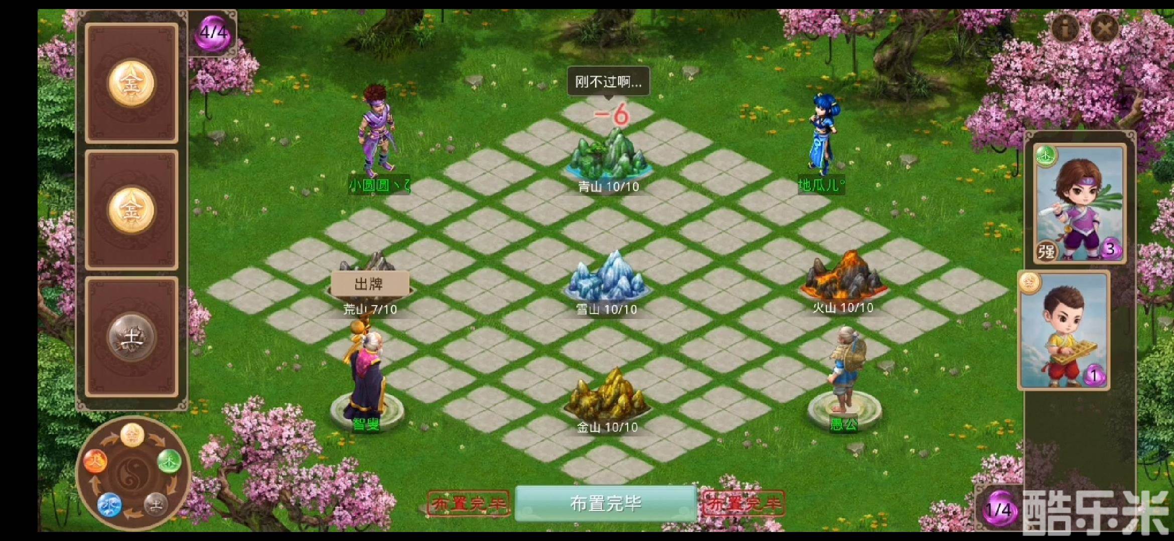 愚公方点击高山派出五行属性“人牌”破坏高山。道友根据五行相克关系出牌,如果所出“人牌”属性克制高山,则移除高山更多耐久,否则只能移除较少耐久,比如对青山使用金属性“人牌”,则会移除较多耐久,若使用其他属性“人牌”就只能削减较少耐久。“加强型人牌”消耗更多能量值,但也能移除更多耐久。另外,每回合最多只能对每座高山使用一张“人牌”哦。