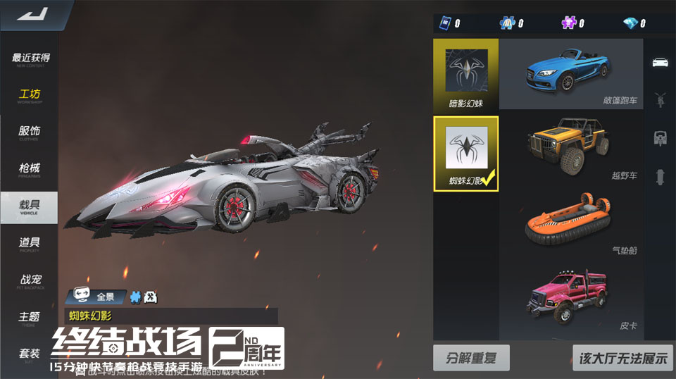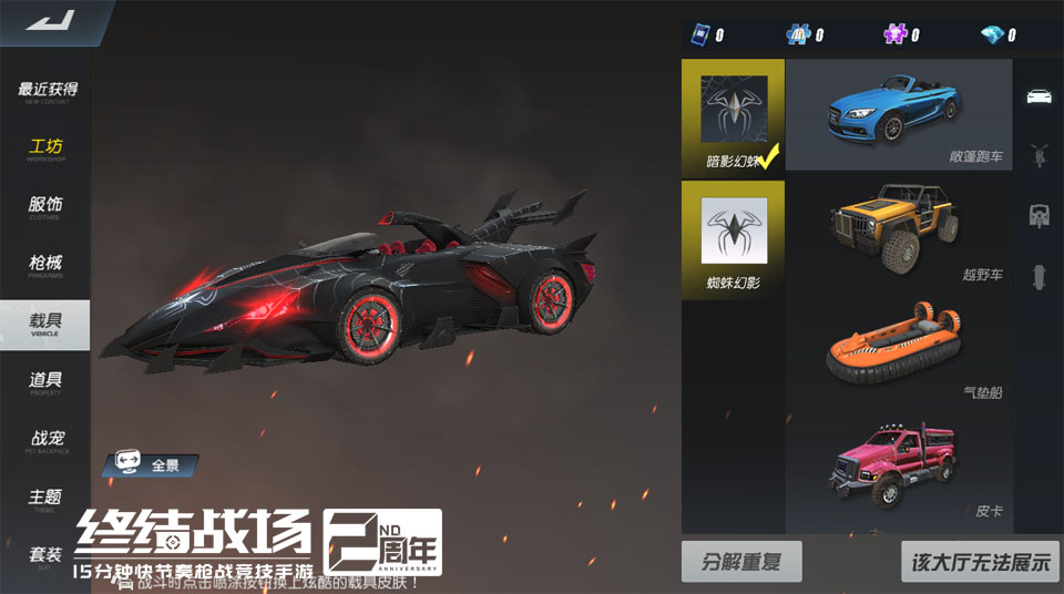 没有获得预装礼包的玩家,也可以通过抽取至尊补给获得男性人物外观暗蛛潜行者、跑车外观蜘蛛幻影、AWM外观致命蛛网等道具。暗蛛潜行者外观以黑色为底,不仅在主躯干部分设计了蜘蛛形状的装饰品,连头部面具都完美还原蜘蛛特征,可以说比蜘蛛人更加原生态。