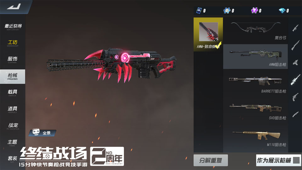 在幽暗的森林中,蛛网是蜘蛛最强大的武器,而在危机四伏的战场上,枪械是每位终结战士的致胜必备。AWM皮肤“致命蛛网”枪身长出了锋利的“蛛爪”,枪口密集的鳞片质感也让人时刻谨记它的“蛛”属性,它喷吐的火力网将成为敌人的噩梦!