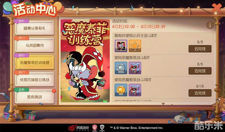 想成为逗乐观众的小丑王,比天分更重要的是勤奋的练习!4月2日至12日,恶魔泰菲训练营将开启,参与训练即可获得丰厚回报,还有机会变身小丑王!