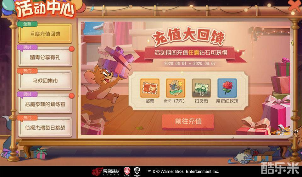 即日起至4月7日,月初充值可享额外奖励,充值任意额度钻石,就将收获邮票、角色体验卡、扫货币和亲密红玫瑰的好礼,为你的4月带来好运和好心情!