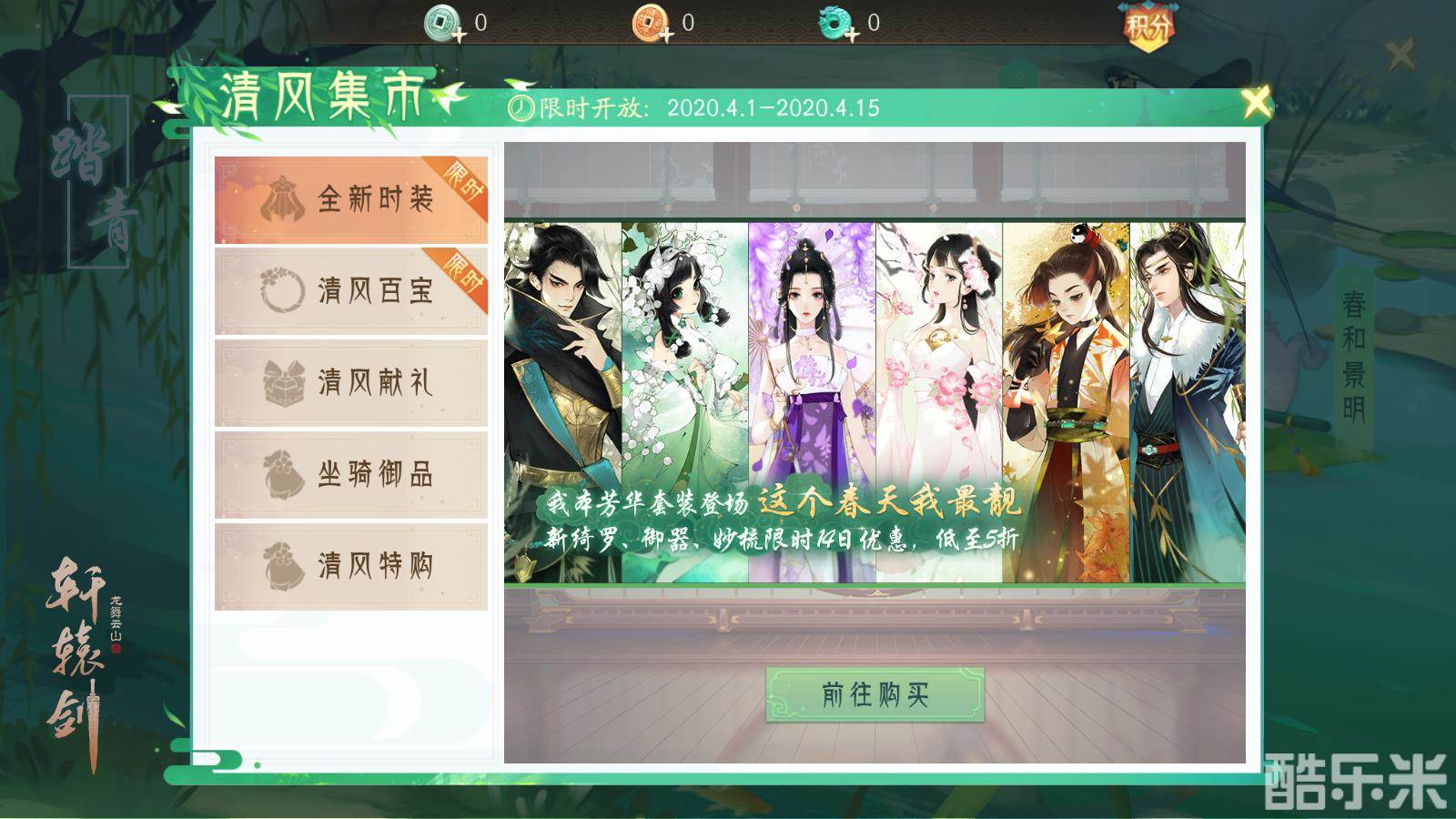 在踏青节活动期间,宝物满满的“清风集市”也将开放,更有新时装“我本芳华”限时5折惊艳上架!龙武军“竹染江山”器宇轩昂;琉璃会“仲夏紫梦”婀娜妩媚;沧剑盟“江南印象”恣意率性;天师道“枫影时光”英气勃发;灵素庄“十里桃花”绝色悦目;隐墨宗“铃兰公主”玲珑俏皮。六大门派,各具特色的锦绣霓裳,助力少侠纵情游览盛唐风华。