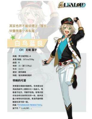 音乐组合「ALKALOID」中的天真无邪的少年白鸟蓝良在由乐元素开发的音乐节奏手游《偶像梦幻祭2》中一直有着超高的人气,无邪的白鸟蓝良也是无数制作人们心中可爱的美少年。下面就一起看看白鸟蓝良首次公开的个人档案吧!