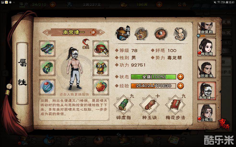这个角色当后排用刀法是非常不错的,小编并不是很推荐玩家们对厉若海的天赋进行刷新,用原来的就可以了,另外比较重要的武学有覆海刀法或伏羲刀法、狂蟒吞象功是必不可少的。