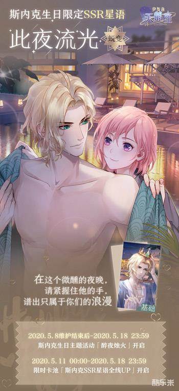 斯内克生日惊喜互动视频特别上线!在斯内克生日的这一天,居然发生了这样的事……欲知详情,指路梦间集天鹅座B站官方号。与此同时,斯内克游戏内生日活动「醉夜烛火」正在进行中,斯内克生日限定SSR星语限时免费拿!店长,快来和斯内克一起谱写只属于你们的浪漫回忆吧。