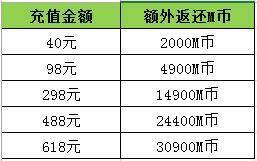 2020年3月31日0点~4月1日23点59分,充值固定金额即可额外获得高额M币返利。