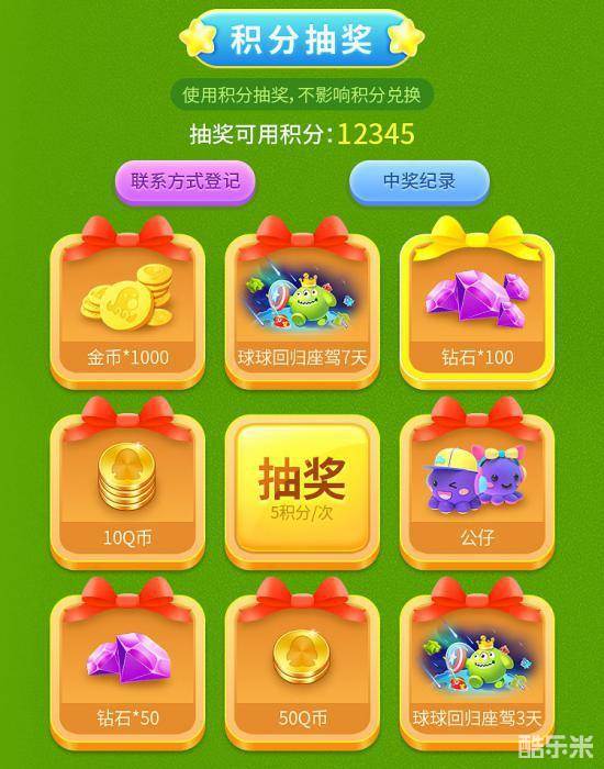 积分抽奖一次消耗5积分,除了常规的“球球回归座驾”,以及Hello相关的实物公仔、APP道具以外;最牛的就是Q币了,最高50Q币简直残暴!350积分可以抽70次,不说别的,抽中个10Q币我看不难吧。