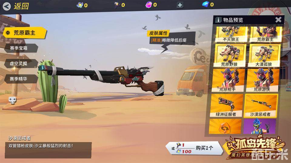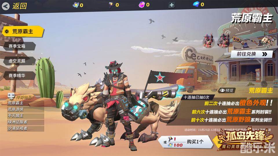 强悍实力来自残酷的战斗磨练,《孤岛先锋》的英雄们在加入试练之前,已经在各种凶险之地留下了赫赫战绩。本周更新后,自带“大漠”、“荒蛮”气场的荒原霸主系列皮肤加入赛季精华宝箱。