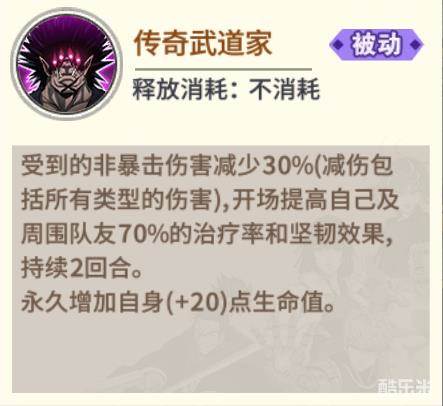 [传奇武道家]豪杰的核心防御技能,不仅自身会减少大量的非暴击伤害,还会提高自己和周围队友的坚韧效果和治疗率。也就是说,在面对当前版本中伤害最高的角色例如饿狼、闪光、King等角色的额外伤害时,豪杰都可以进行大幅度减免。如此一来,豪杰不单提升了自身的坦度,其另外增加的治疗率和坚韧效果也可配合僵尸男核心技能,提升队伍整体的生存能力和回复能力。