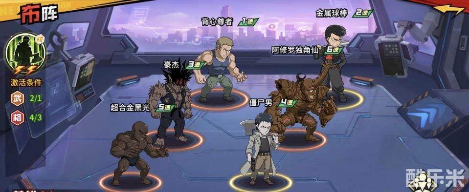 背心作为1速,迅速打出坚韧效果,配合豪杰被动效果,保证我方后排生存,并对单列造成伤害;金属球棒作为2速,对单列打出伤害触发受伤效果,同时触发自身坚韧,增加自身生存能力;豪杰作为3速,依靠自身超高攻击系数的全体攻击补足伤害,打出收割,秒掉单列敌人。
