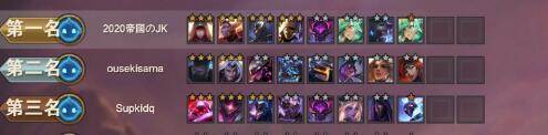 四重装二海盗二未来二破法二秘术,核心是重装二海盗,从打架开始就能疯狂刷钱,杰斯至关重要,目前大喜来最好的一把我9级第二名7级。