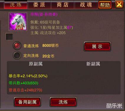 你可以在游戏装备洗练中强化你的魔吕属性,每个装备最多3个额外附属。当然每个附加属性的增设都是需要花费一定的金币的,每个小伙伴可以根据自己的实际情况来增加附属,从而大大增强魔吕的综合实力。
