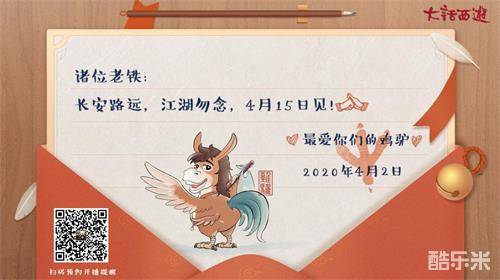 昨日《大话西游2》的全民福星鸡驴离家出了,走前留给大家一封信:“长安路远,江湖勿念,4月15日见。”