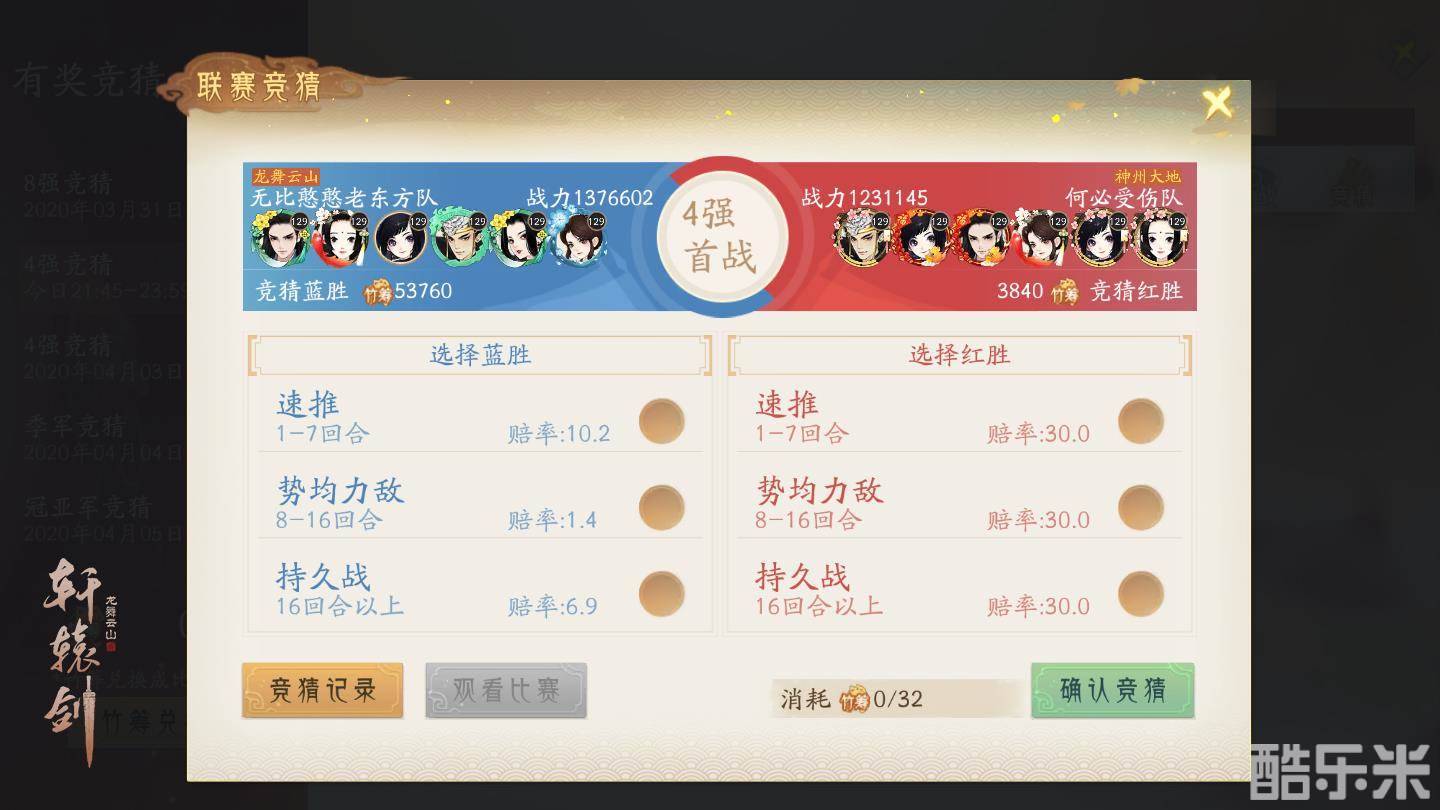 在观看赛事的同时,侠士们也别忘了在竞猜活动界面免费领取竹筹,参加实时竞猜,赢得丰厚奖励。同时当本服战队晋级时,所有达到60级的本服在线侠士还可获得一次晋级奖励。