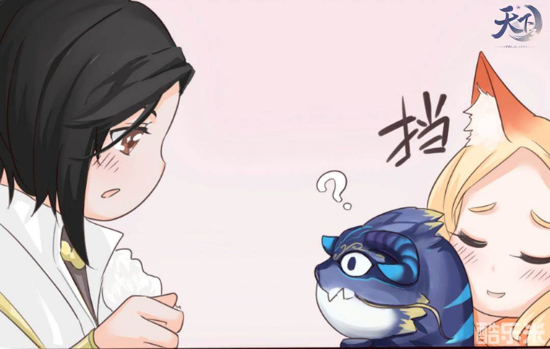 在《天下》的故事里,饕餮是涂山女娇捡到的一只小宠,在女娇收养它前,过着食不果腹的生活。不过它有着一个特别的设定,饿了就会化形成性格干脆利落的酷妹妹,战斗力爆棚;吃饱了,就会化形成神态呆萌可爱的美男子,睡着了就打呼噜。