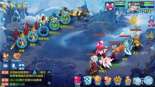 2、玩家可以操纵角色自身和灵宠使用技能,在倒计时30秒的选招时间内,选择想要释放的技能,点击技能释放的目标。部分技能有冷却回合,需要冷却完毕才可以使用