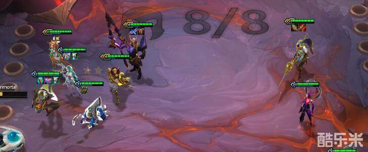 猴子大招移动速度削弱了,很难大到核心C,虚空6法伤害足够大眼不需要输出装一个水银防打断,大虫子2星有龙牙你根本打不动.这套全部魔法输出,很缺伤害.除非杰斯,铁男能3星,不然就是烂分的命。