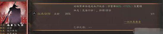 比较容易获取,非常适合突击武将用,毕竟40%发动几率,运气好可以打出二段伤害对主将增伤。适合太史慈、孙策、马超、孙尚香这种武力高,同时智力也不错的武将。