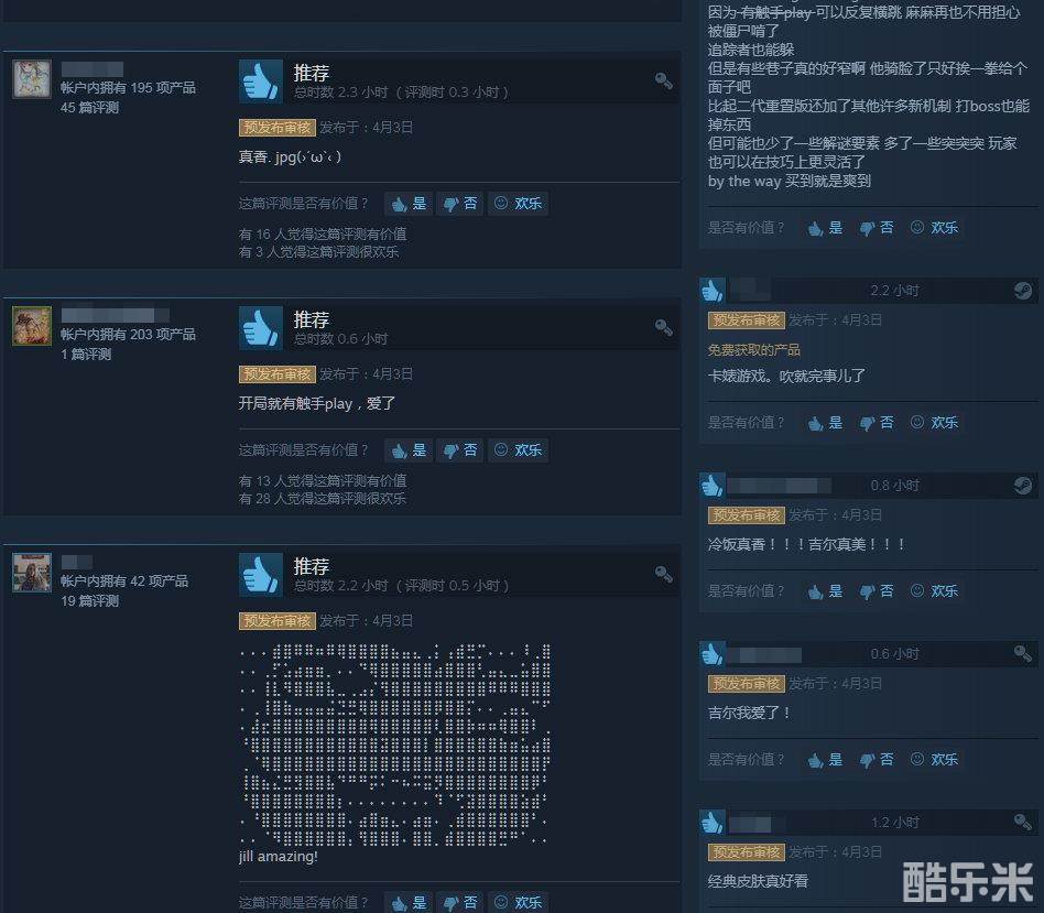 《生化危机3:重制版》Steam特别好评 吉尔好美真香